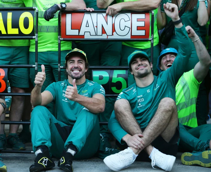 첫 F1 포디움을 획득했습니다. 이후 2023년에는 더블 월드 챔피언 Fernando Alonso가 팀에 합류하여 Lance Stroll와 함께하고 있습니다. AMR23은 처음부터 엄청난 성능을 자랑하며 팀은 역대 최고 기록인 280점을 획득하였으며, 바레인 그랑프리에서 페르난도의 데뷔 포디움을 포함해 8개의 포디움을 획득했습니다.