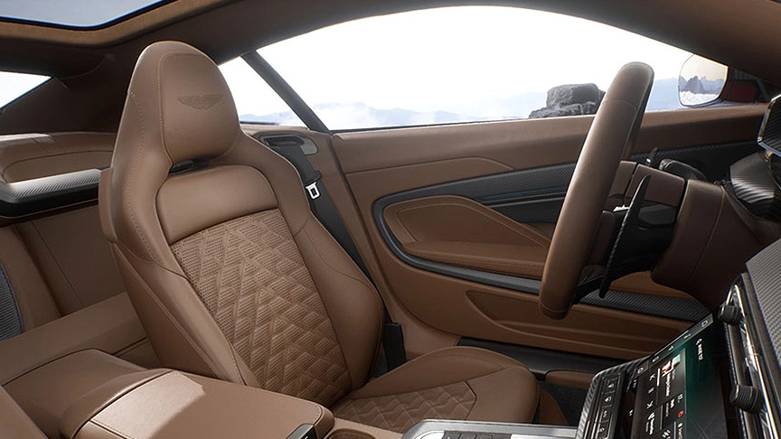 애스턴 마틴의 디자인 혁신은 독특한 특징들에서 드러납니다. 사각 원형 가장자리를 가진 쿼드 배기구와 Kamm 테일에 배치된 맞춤형 실드가 클래식 애스턴 마틴 모델을 떠올리게 합니다. 전면 그릴을 반영한 일곱 개의 독특한 라이트 블레이드는 차량의 너비를 강조하며, 후면 스크린은 파노라마 유리 지붕과 자연스럽게 통합됩니다. 중앙과 외측 블레이드가 있는 공격적인 리어 디퓨저는 공기 흐름을 개선하여 고속에서도 안정성을 보장합니다.